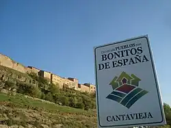 El antiguo casco urbano de Cantavieja cuenta con una estructura medieval y está declarado conjunto histórico-artístico desde 1981. Destaca la plaza porticada, dedicada a Cristo Rey, donde se levantan los edificios de la iglesia y el Ayuntamiento. En enero de 2014, Cantavieja entró a formar parte de la Asociación «Los Pueblos más Bonitos de España», gracias al título obtenido en la Feria Internacional de Turismo de Madrid (FITUR). Este título se hizo oficial el 3 de abril de ese mismo año, siendo incluido dentro de una lista de 24 pueblos españoles que disfrutan de este reconocimiento.[18]
