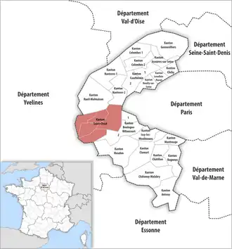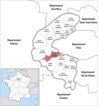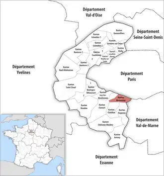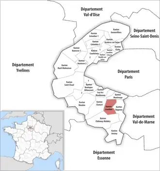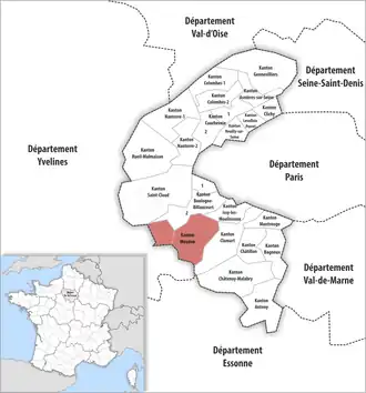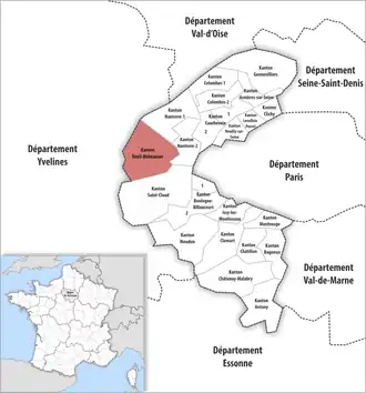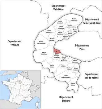 - Distrito de Boulogne-Billancourt[2] (20 cantones - subprefectura: Boulogne-Billancourt):
