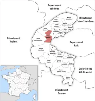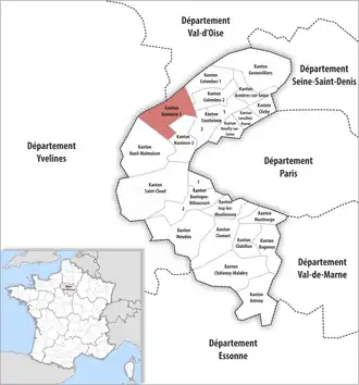 - Distrito de Nanterre[3] (20 cantones - prefectura: Nanterre):