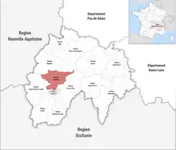 - ↑ «Página web con información del distrito de Mauriac (en francés)». Archivado desde el original el 8 de diciembre de 2015. Consultado el 6 de diciembre de 2015.