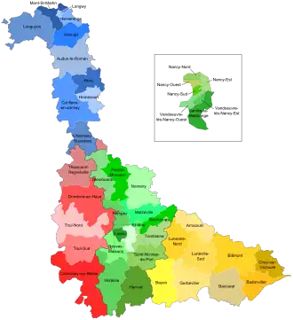 - Distrito de Nancy[3] (20 cantones - prefectura: Nancy):