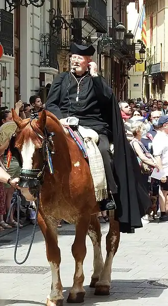Su función principal es invitar a participar en la procesión del Corpus durante la cabalgata del Convite. En la cabalgata, que se celebra a las 12 del mediodía del domingo del Corpus, sale tras las banderolas, los gigantes y los cabezudos o nanos.[1] Va montado a caballo o en una mula. Cuando la fiesta se celebraba el jueves, el convite se hacía el mediodía de la víspera, hasta 1990, cuando la fiesta del Corpus se pasó a celebrar en domingo.[2]