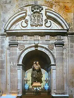 - ↑ Pese a que José Hervella Vázquez y Miguel Ángel González García afirman que el traspaso se produjo en 1664, una desaparecida inscripción mencionada por Benito Fernández Alonso deja patente que la entrega tuvo lugar en 1662, año en que además se facturó la imagen que preside la capilla.