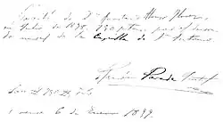 - La primera corresponde al entallador y ebanista Manuel Canabal, quien ejecutó el altar, consistente en una mesa de sencilla hechura con gradas ornamentandas en el frente con cruces cuadrilobuladas que se elevan en la zona central para fungir como pedestal, donde se halla una imagen de San Antonio obra de Mateo de Prado en 1662: «Recibí de D. Anastasio Florez la cantidad de ochocientos setenta reales por obras echas en el altar de San Antonio de carpintería y para que conste lo firmo en Orense a seis de febrero de mil ochocientos nobenta y nueve. Son 870 rls. (rubricado Manuel Canabal). Son 217,50 pesetas».[4]: 298