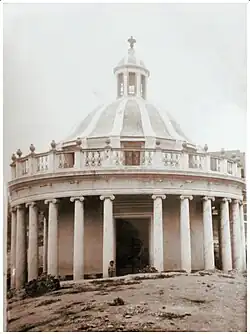 Es un monumento conmemorativo de estilo neoclásico, inspirado en el templete de San Pietro in Montorio de Roma.[4] Presenta planta circular, cuenta con veintiocho columnas jónicas y está rematado por una cúpula de media naranja.[1] La fachada muestra la división en dos cuerpos: la parte superior con cornisamento abalaustrado y dados de mampostería que rematan en pináculos a la altura de la terraza; todo el conjunto está terminado con parapeto abalaustrado alternado. El ingreso al recinto está jerarquizado por una portada con jambas, dintel acanalado y un frontoncillo triangular.