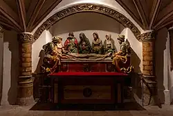 Debajo del altar mayor está la capilla del Sepulcro a manera de cripta. Se accede a ella por fuera del presbiterio y a través de una puerta enrejada que conduce a las escaleras de bajada. Es una capilla abovedada que contiene tres altares. El del centro está dedicado al Santo Entierro y tiene un hermoso grupo escultórico de Copín de Holanda. El de la derecha tiene importantes pinturas de Luis Medina y Francisco Rizi.[8] El altar de la izquierda está dedicado a san Julián y presenta una talla de este arzobispo más dos tablas italianas con el tema de san Pedro y san Pablo.