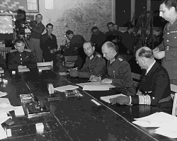 - ↑ Video: Beaten Nazis Sign Historic Surrender, 1945/05/14 (1945). Universal Newsreel. 1945. Consultado el 20 de febrero de 2012.
