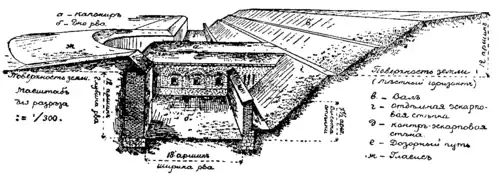 Significaba una obra de fortificación y galería de comunicación, que se empleaba para impedir el paso al foso, obras de gran capacidad que estaban dispuestas para la infantería y artillería ligera con empleo de botes de metralla y que constituía uno de los elementos más importantes en la defensa de los fosos de la fortificación poligonal.