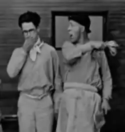 - ↑ En los intertítulos que presentan la escena se puede leer: "He popped so many champagne corks last night the neighbors thought he had opened a shooting gallery." (Trad.: «Descorchó tantas botellas de champán que los vecinos pensaron que había abierto una galería de tiro».)