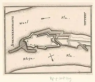 ![]() Mapa del fuerte de Schenkenschans durante el siglo XVII. | ||||