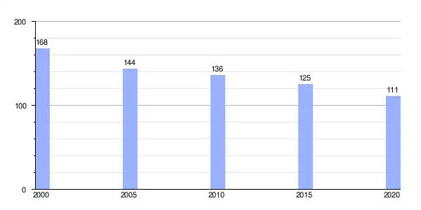| Gráfica de evolución demográfica de Caraño (parroquia) entre 2000 y 2020 |