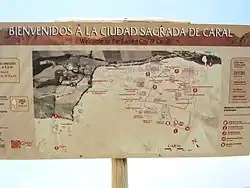 La Ciudad Sagrada de Caral-Supe o simplemente Caral, es un sitio arqueológico donde se hallan los restos de la principal ciudad de la civilización caral. Se encuentra en el valle de Supe, cerca del poblado actual de Caral, 182 kilómetros al norte de Lima (Perú), a 23 km del litoral y a 350 m s. n. m.[1] Se le atribuye una antigüedad de 5000 años y es considerada la ciudad más antigua de América y una de las más antiguas del mundo, pues no se ha encontrado hasta ahora en dicho continente otro sitio más antiguo con semejante diversidad de edificios monumentales, con distintas funciones ceremoniales y administrativas.[2][3] Ha sido declarada Patrimonio Cultural de la Humanidad por la Unesco.[4]