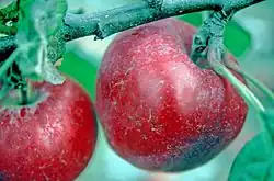 - ↑ Hampson, Cheryl R.; Kemp, Henk (2003). Apples. Botany, Production and Uses, ed. Characteristics of Important Commercial Apple Cultivars. CABI Publishing. pp. 62. ISBN 0-85199-592-6.