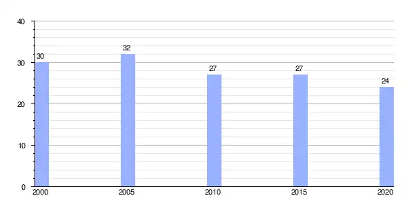 | Gráfica de evolución demográfica de Carazo entre 2000 y 2020 |