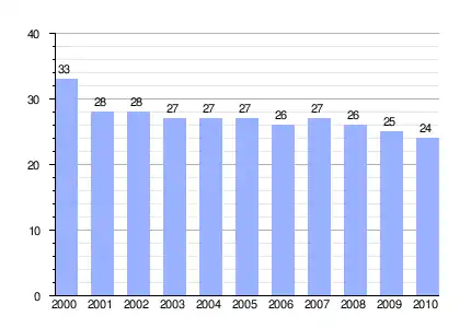 Población de derecho (2000-2010) según los censos de población del INE a 1 de enero de cada año.[6] |