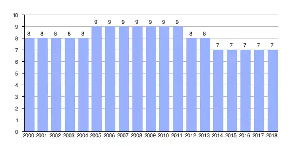 | Gráfica de evolución demográfica de Carballeira entre 2000 y 2018 |