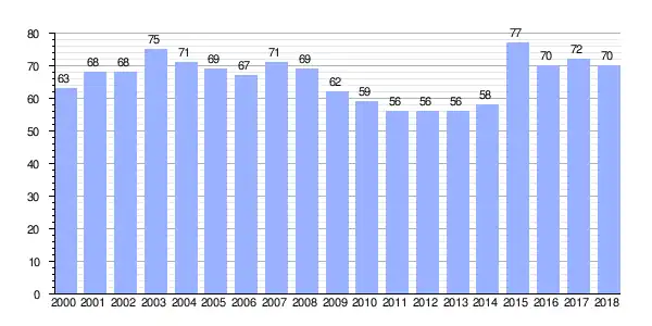 | Gráfica de evolución demográfica de Carballo entre 2000 y 2018 |