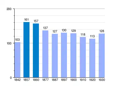 | Gráfica de evolución demográfica de Carbonera[1] entre 1842 y 1930 |