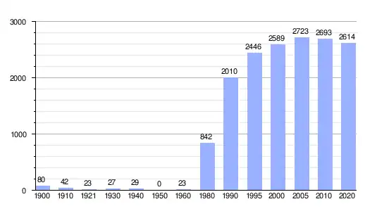 | Gráfica de evolución de Carboneras entre 1900 y 2020 |