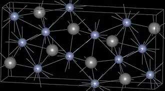 ![]() Estructura del Cr3C2. Los átomos grises son de carbono. | ||