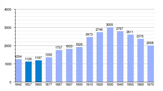 | Gráfica de evolución demográfica de Carchelejo[5] entre 1842 y 1970 |