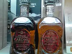 En diciembre de 2003, el enorme éxito de ventas de Cardhu (que se incrementó hasta las 1.200.000 botellas) hicieron que la demanda comenzara a superar a la oferta (principalmente por su éxito en España así como por su uso en Johnnie Walker). En ese momento Diageo tomó la decisión de dejar de etiquetar su producto como Cardhu single malt y rebautizarlo como Cardhu pure malt utilizando para su fabricación maltas de características similares de Speyside, y embotellándolo con el mismo diseño de botella. De esta forma, se logró incrementar la producción, pero se produjo un rechazo por parte del público y ciertos reclamos por parte de la competencia (en este caso Glenfiddich) por perjudicar la imagen de la denominación single malt. Diageo tuvo que variar las características de color y etiquetado de su pure malt para solucionarlo.[1]
