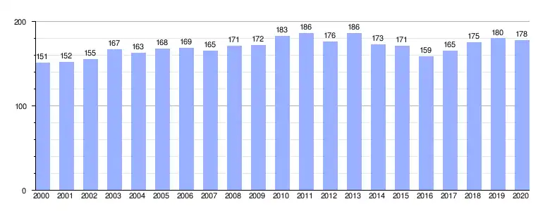 | Gráfica de evolución demográfica de Careñes[2] entre 2000 y 2020 |