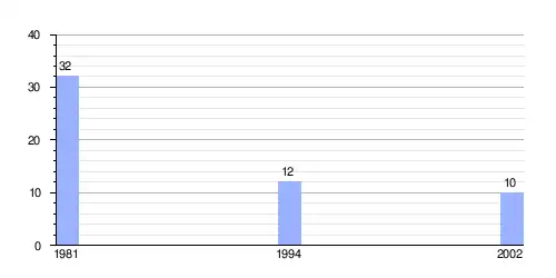 | Gráfica de evolución demográfica de Careviḱ entre 1981 y 2002 |