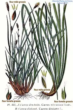 - ↑ «Carex distans». Tropicos.org. Missouri Botanical Garden. Consultado el 16 de octubre de 2012.