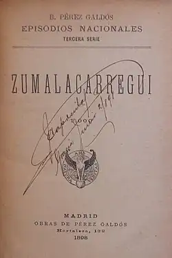 En la historia de la literatura, la opinión predominante es que la posición galdosiana sobre el carlismo permanece bastante estable y puede considerarse homogénea. Según esta teoría, el carlismo de Galdós era una bestia monstruosa que, gracias a un enorme sacrificio de sangre, ha sido ahuyentado hacia los bosques. La gente puede deambular libremente por las calles, pero aún se pueden escuchar los aullidos y gemidos del monstruo; dado que el bruto podría reaparecer en la ciudad en cualquier momento, la vigilancia está a la orden del día.[108] Tal perspectiva no dejaba lugar a sutilezas ni a un estudio imparcial y en estos términos la obra de Galdós no difiere de la literatura partidista anterior; quizás el mejor ejemplo de tal hostilidad educativa intransigente sea Doña Perfecta (1876). Una opinión un tanto competitiva es que la perspectiva del autor cambió con el tiempo, especialmente después del desastre de la guerra estadounidense; la confrontación liberal-carlista se redefinió un poco por una nueva perspectiva, y Galdós se volvió menos militante y más historiador.[109] Aunque claramente no demostró simpatía por el carlismo en los volúmenes de la tercera y cuarta serie de Episodios Nacionales, se informa que el movimiento se describe cada vez menos en términos maniqueos e infernales;[110] en ocasiones incluso podría parecer que algunas personalidades, por ejemplo, el protagonista principal de Zumalacárregui (1898), se presentan como modelos a seguir.[111]