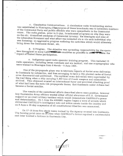 Una vez en el poder, hay evidencia de la premura con que el gobierno liberacionista dirigió sus acciones para conseguir documentación inherente a eventuales «instrucciones especiales» que durante los «dos gobiernos anteriores» se hubieran otorgado para facilitar los viajes de «políticos» y «comunistas». Esto se dio debido a la imperiosa necesidad norteamericana de conseguir pruebas acerca del carácter «comunista» del régimen derrocado. La posibilidad de obtener «evidencia documental» con la cual exponer la conspiración comunista en los asuntos de Guatemala, había sido definida como uno de los objetivos primarios por parte de la CIA, que envió a varios de sus oficiales a Ciudad de Guatemala durante 10 días para que coordinasen la creación de una fuerza de seguridad local experta en las prácticas usadas por el Macartismo en los Estados Unidos.[23]