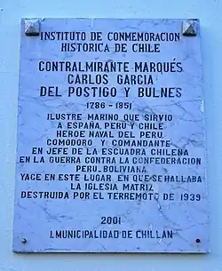 - Municipalidad de Bulnes (abril de 2008). «Carlos García del Postigo». Archivado desde el original el 22 de febrero de 2014. Consultado el 14 de febrero de 2014.