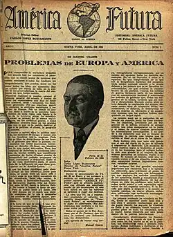 Para ello instaló en Nueva York una imprenta propia, "Carlos López Press", donde comenzó a editar la famosa revista de oposición a la dictadura de Gómez "Venezuela Futura". En esta revista colaboraban muchos ilustres articulistas que habían logrado escapar de las cárceles de la dictadura; entre ellos sus parientes Rafael Bruzual López y Néstor Luis Pérez Luzardo. En 1934 el nombre de la revista fue cambiado por el de "América Futura", con un mensaje dirigido a toda la América hispana para lograr la consolidación de la democracia en el continente.[1]