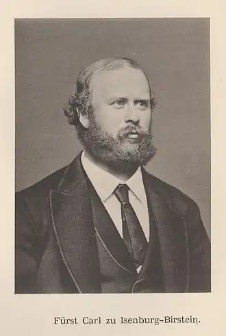 - Príncipe Leopoldo Wolfgang (1866-1933), sucedió a su padre como Príncipe de Isenburg. En 1902 desposó a Olga de Sajonia-Weimar-Eisenach (1869-1924), hija del Príncipe Hermann de Sajonia-Weimar-Eisenach, y tuvieron descendencia. Desposó por segunda vez en 1924 a la Condesa María von Dürckheim-Montmartin (1880-1937), sin descendencia.