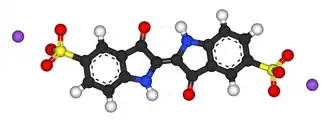 El carmín de índigo (denominado también indigotina) es un colorante sintético de color azul empleado en la industria alimentaria con el código E 132. Se produce de forma natural en la savia del arbusto Indigofera tinctoria, aunque en la actualidad es producido de forma sintética.[2] Es la base del pigmento azul conocido como índigo (cuyo contenido es del 90 % de indigotina). Es empleado también como un indicador de pH que es azul a un pH de 11.4 virando a amarillo a los 13.0.[3]