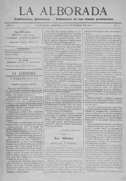 - ↑ «"La Alborada" : única publicacion dirijida i redactada por obreras, fundada en Valparaíso el 10 de setiembre de 1905 - Memoria Chilena». Memoria Chilena: Portal. Consultado el 24 de enero de 2020.