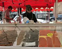 Algunos otros platos son: grasa en cubos ya la parrilla, ensaladas de cartílago y estofado de piel de ballena.[21]