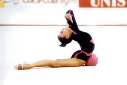 - ↑ Como «competición internacional oficial» se entienden aquellas competiciones internacionales organizadas por la Federación Internacional de Gimnasia (FIG), por sus organismos continentales (como la Unión Europea de Gimnasia) o por el Comité Olímpico Internacional (junto a la FIG). Se incluirían por tanto Juegos Olímpicos, Preolímpicos, Campeonatos Mundiales, Campeonatos Europeos y pruebas de la Copa del Mundo, así como competiciones extintas tales como la Final de la Copa del Mundo, la Final de la Copa de Europa, el Campeonato Europeo Júnior (ahora integrado dentro del Campeonato Europeo), el Euromasters, y el Campeonato Europeo por Equipos (sucesor del Euromasters). No se incluyen bajo este término competiciones únicamente patrocinadas por dichos organismos, como los Juegos Mediterráneos o los Juegos Mundiales en el caso del COI, o el Grand Prix en el caso de la UEG.