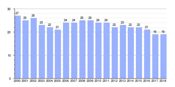 | Gráfica de evolución demográfica de Caropa entre 2000 y 2018 |