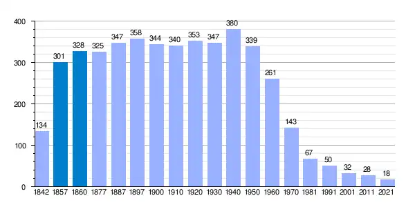 | Gráfica de evolución demográfica de Carrascosa de Abajo[4] entre 1842 y 2021 |