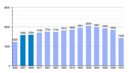| Gráfica de evolución demográfica de Carrascosa del Campo[15] entre 1842 y 1970 |