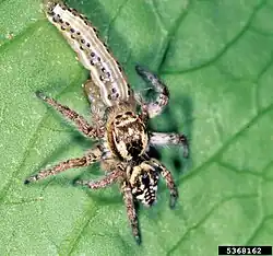 - ↑ a b c «Carrhotus barbatus» (en inglés). Catálogo mundial de arañas. Consultado el 9 de abril de 2024.