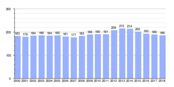 | Gráfica de evolución demográfica de Carrio entre 2000 y 2018 |