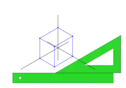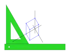 Colocando la regla horizontal el ángulo recto del cartabón permite trazar líneas verticales. El ángulo de 30° permite trazar los ejes del plano horizontal.