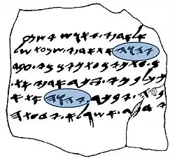 - ↑ a b COJS (ed.). «Lakhish Ostraca, c. 587 BCE. The Lachish Letters» (en inglés). Consultado el 26 de febrero de 2021.
