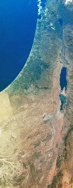| 1570 | Mapa de Ortelius | Abraham Ortelius | Mapa de 1570 del atlasTheatrum Orbis Terrarum.[41] Es una representación, de Ortelius, de la Palestina bíblica en su atlas contemporáneo. Matari lo describió como un acto "cargado de teología, escatológico, y finalmente de restaruración para-colonial".[42] | Titulado "Palaestinae Sive Totius Terrae Promissionis Nova Descriptio" (Palestina, toda la tierra prometida y una nueva descripción) |