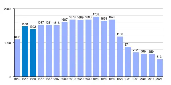 | Gráfica de evolución demográfica de Carucedo[14] entre 1842 y 2021 |