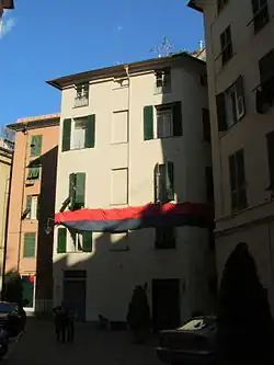 Imagen de los caruggi, se nota la típica presencia de contraventanas.