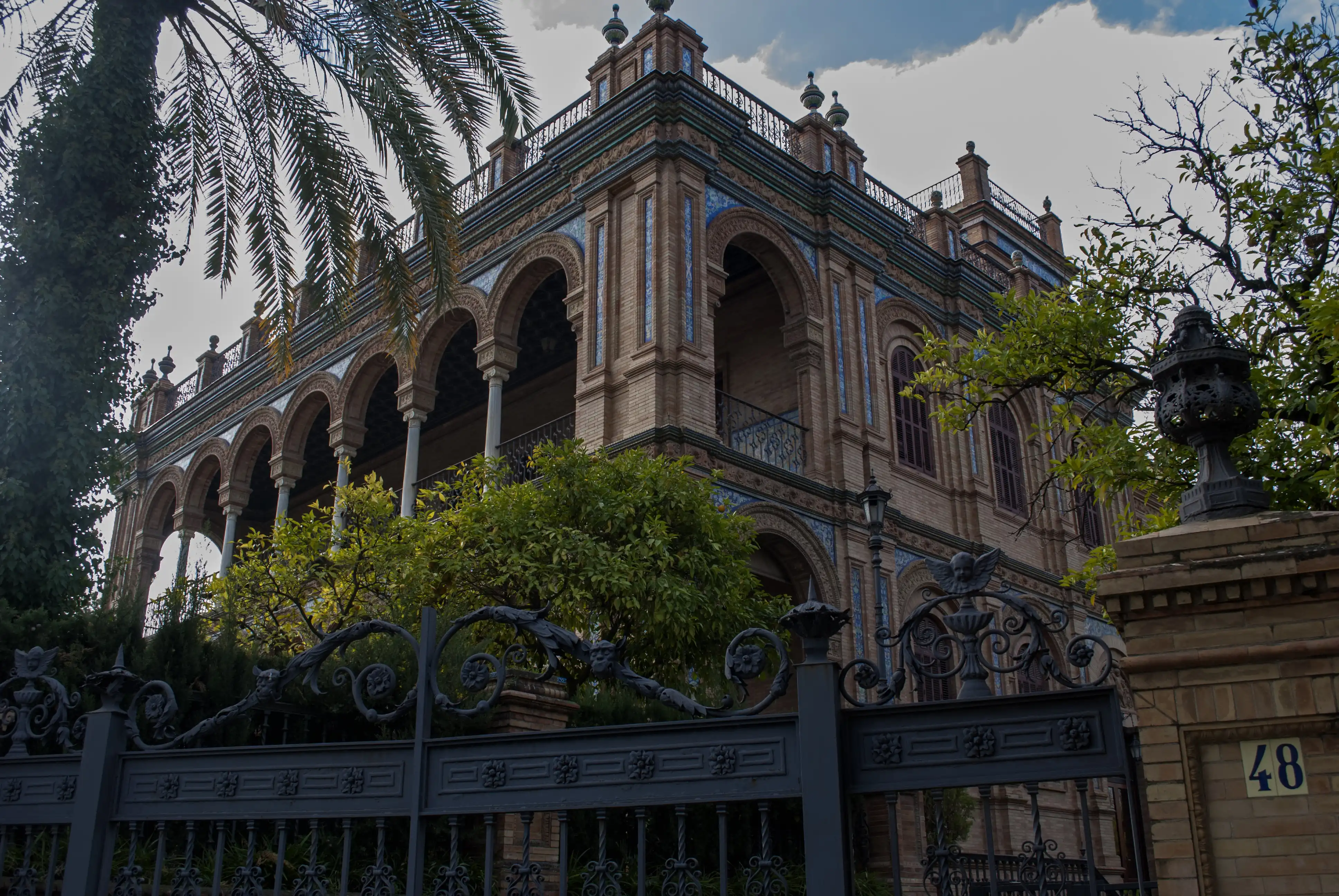 El edificio se encuentra en el número 48 de la avenida de la Palmera, en Sevilla. Construido entre 1923 y 1926, en un estilo regionalista, el arquitecto responsable del proyecto fue Aníbal González.[1] Fue construida para el primo del arquitecto, el periodista y empresario Torcuato Luca de Tena y Álvarez-Ossorio.[2]