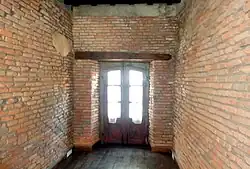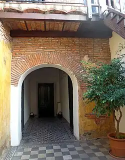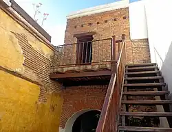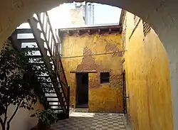 Tiene una fachada exterior lisa, con una pequeña entrada y una puerta pintada de verde atravesada por una cerradura de hierro. Mantiene sus paredes de barro cocido y otros elementos originales.En la planta superior asoma un balconcito con barrotes verticales de hierro, desde donde se esconde una ventana de dos hojas simétricas y dos cortinas iguales pliegue a pliegue. Por sobre la cornisa aparecen algunas plantas que dejan ver los cimientos a través de los viejos y descascarados materiales.[1]